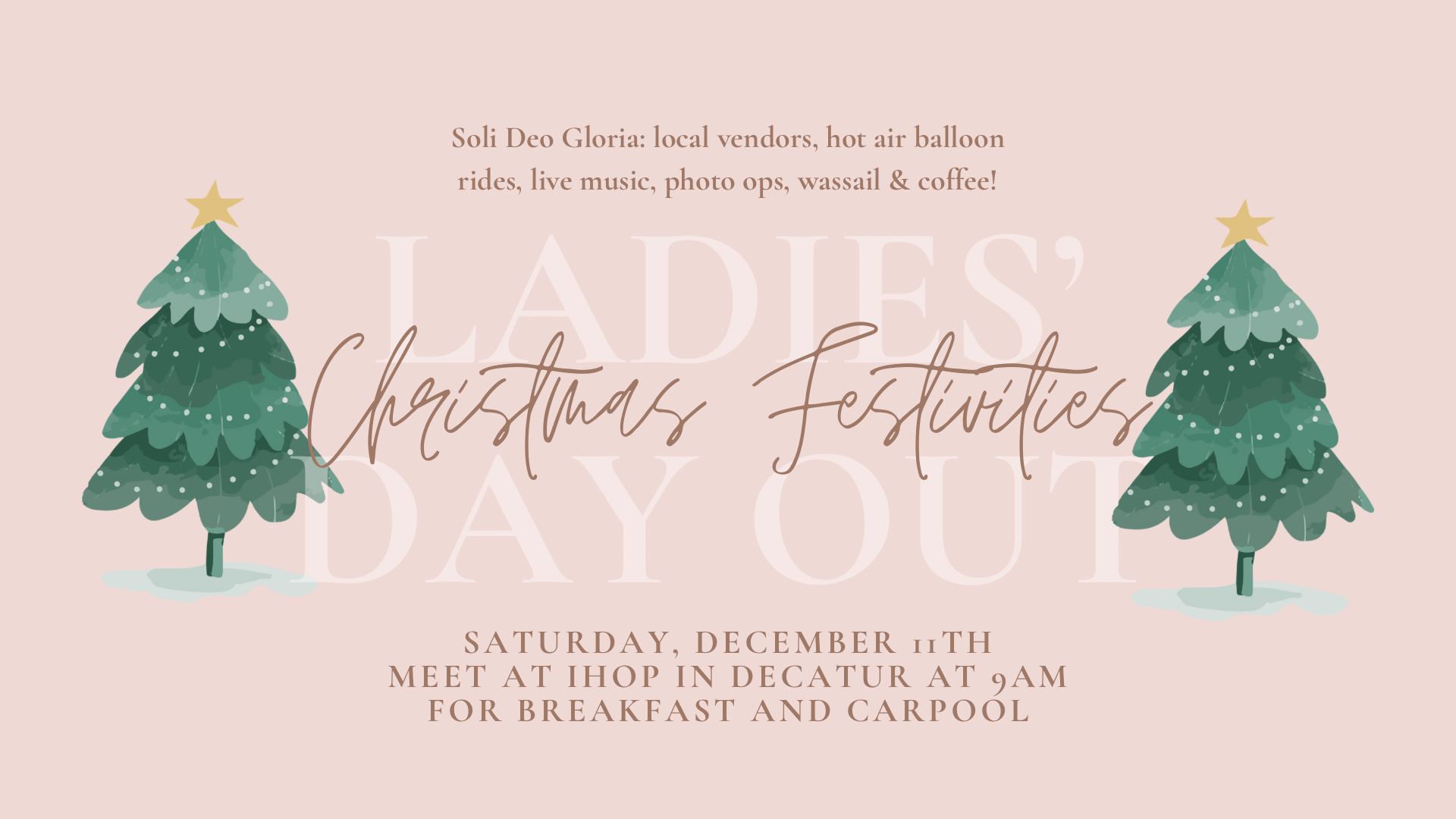 We will enjoy breakfst @IHOP and then head to Soli Deo Gloria for a fun time shopping the local venders!